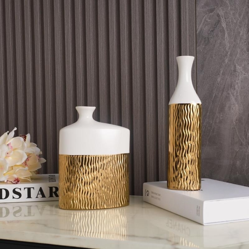 Vases à Fleurs Creux En Céramique Dorée